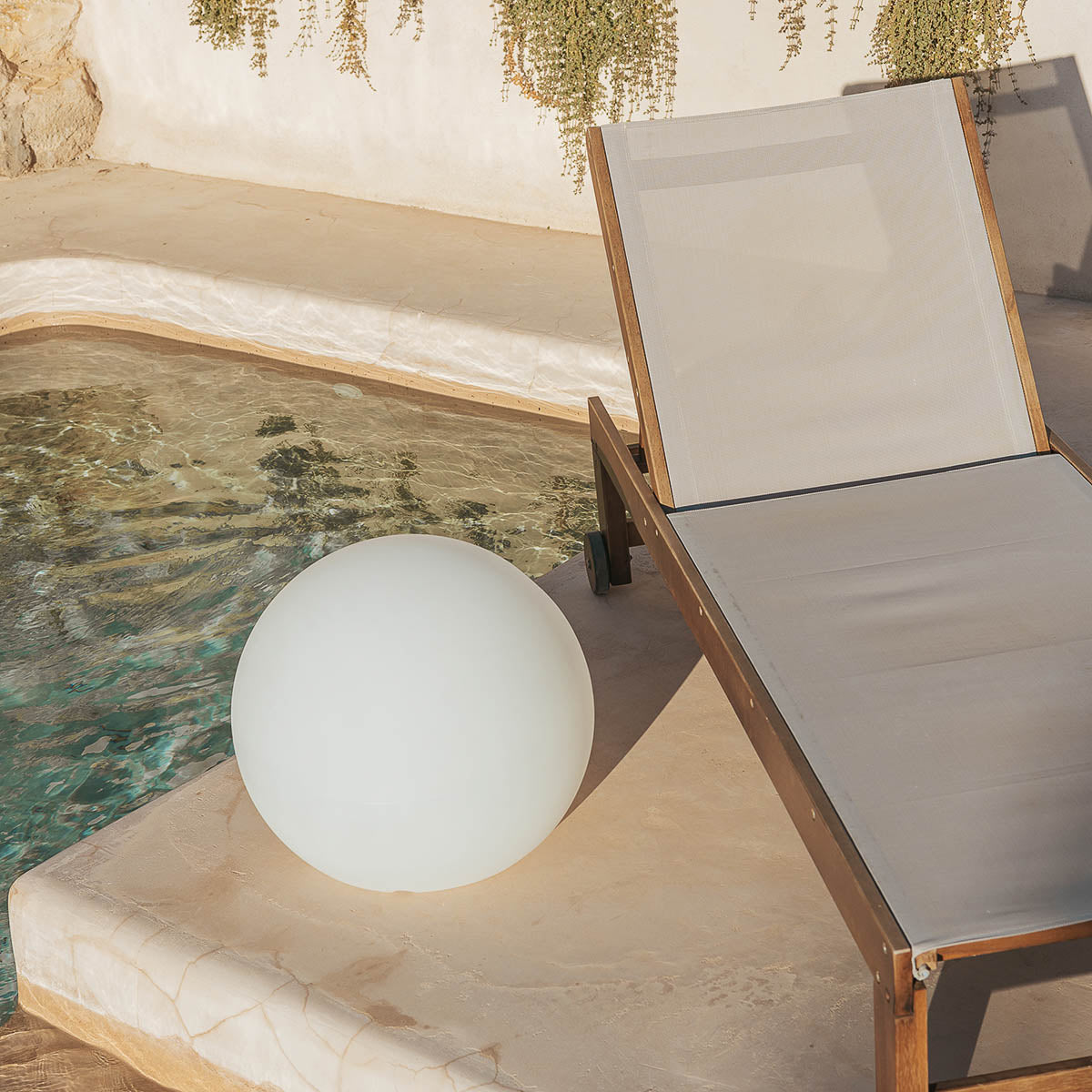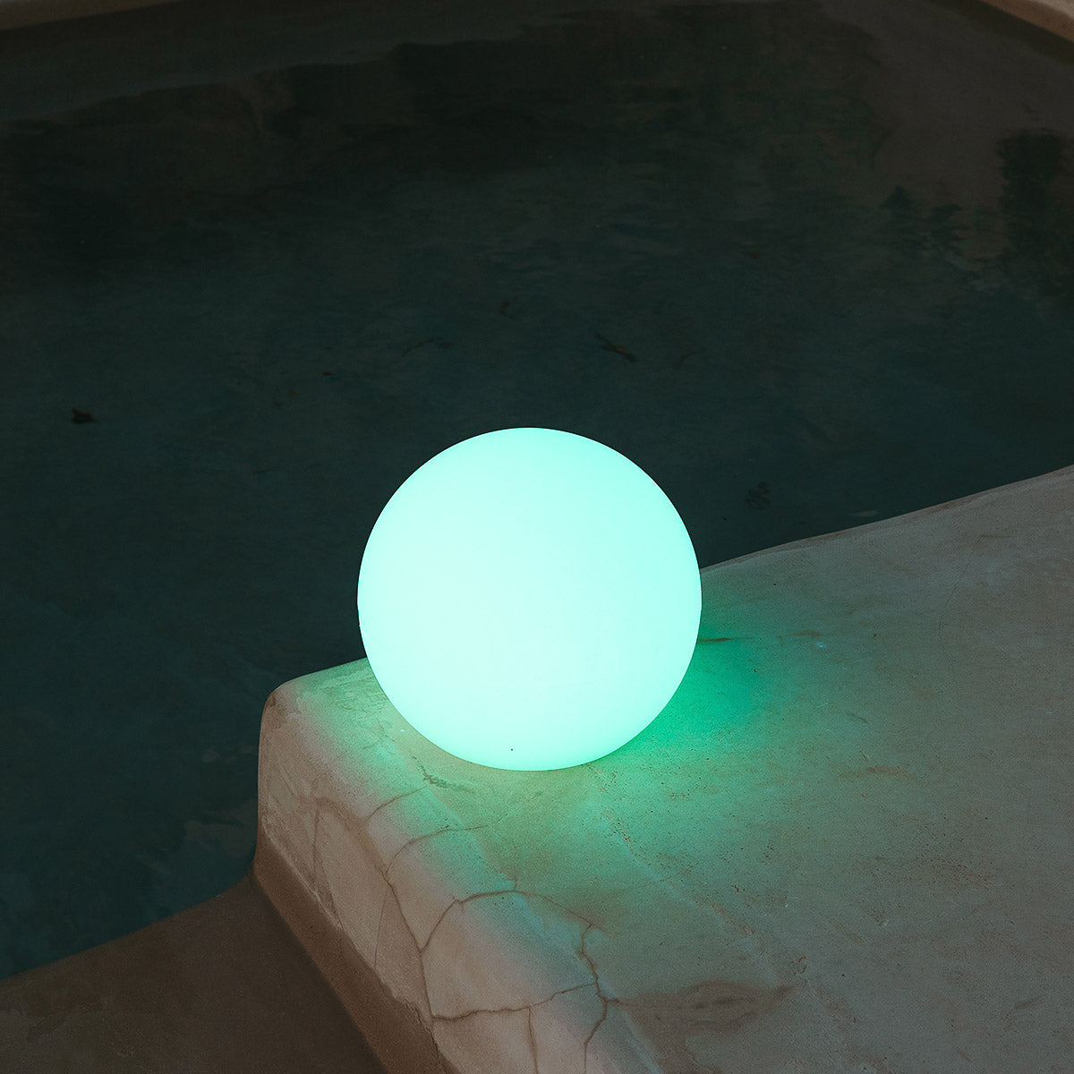 The Buly illuminated ball is available in various sizes: 20, 30, 40, 50, 60 and 80. Allowing you to decorate both a dining table and the pool in your home. As with wired white light, and wireless, so you can change the tone of light without having to get out of the water.