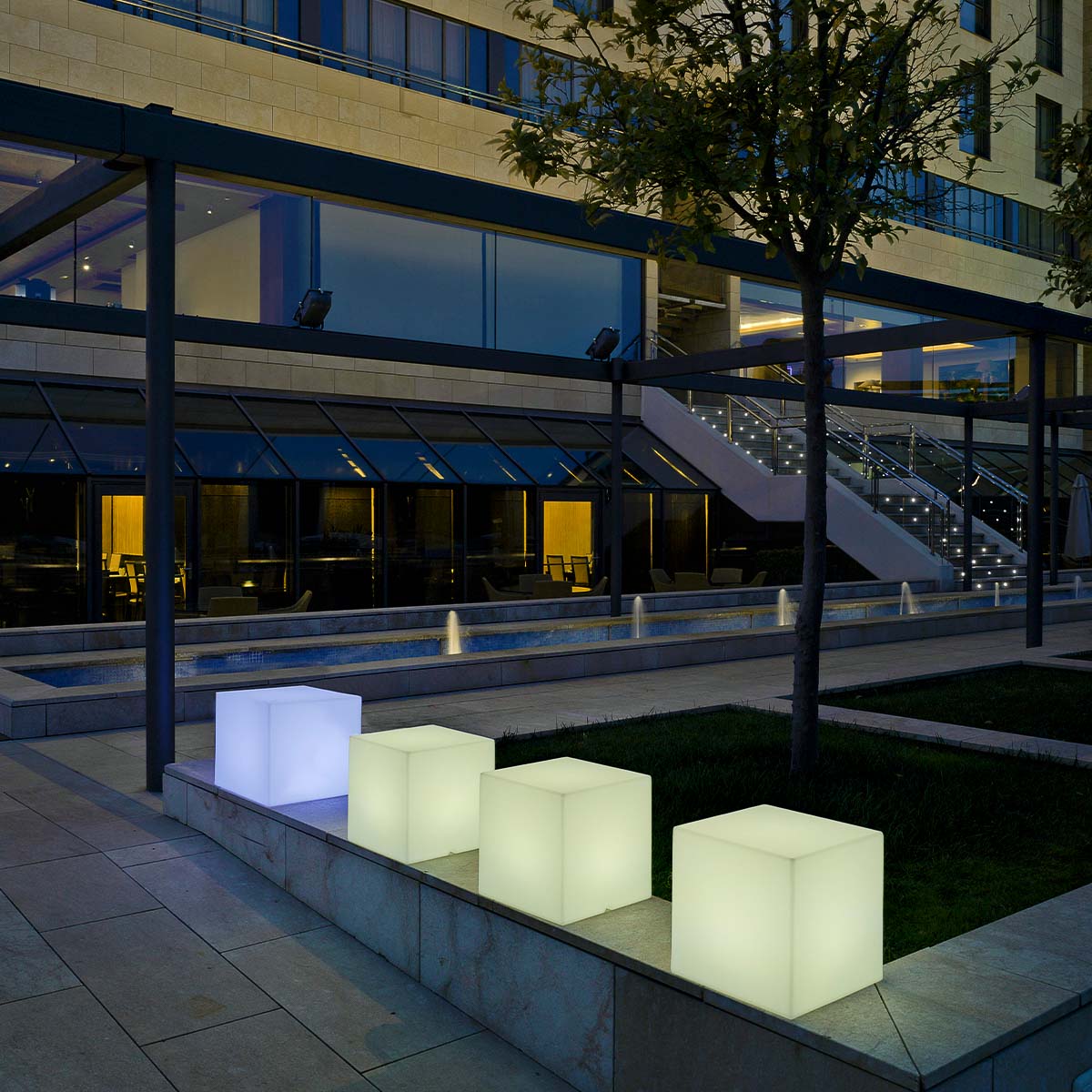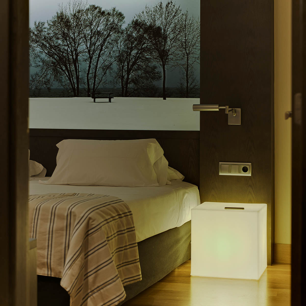 The CUBY illuminated cube is available in different sizes, so that it fits in any corner of your home and you can find it both wired in white light and wireless, in case you don't feel like getting up from the sofa to change the color or intensity of the light.