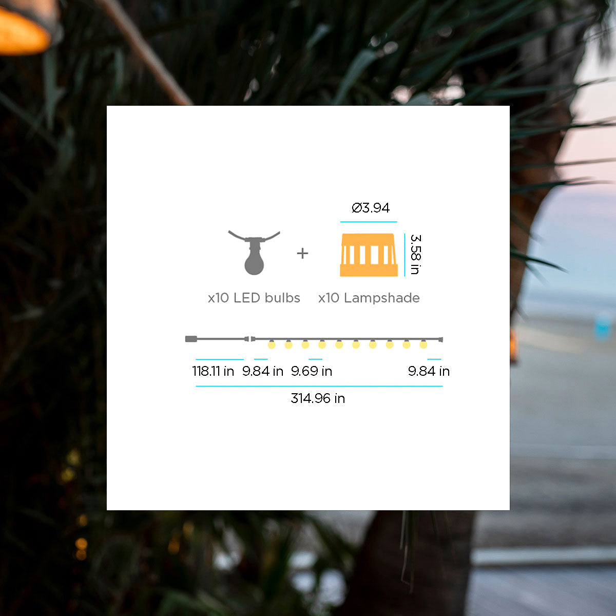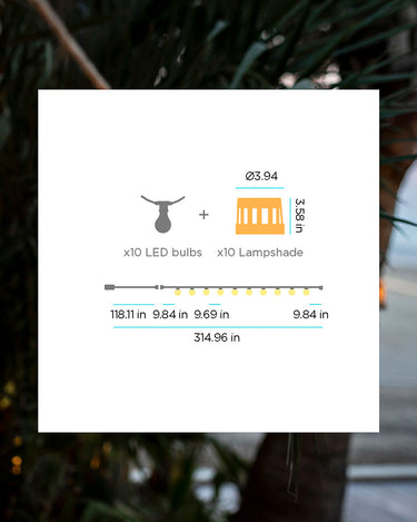The AURORA decorative garland is perfect for events and parties, it is also ideal both for decorating your home and for any outdoor corner, garden, terraces, businesses or as a Christmas decoration. Its lampshade is handmade from natural fibers.