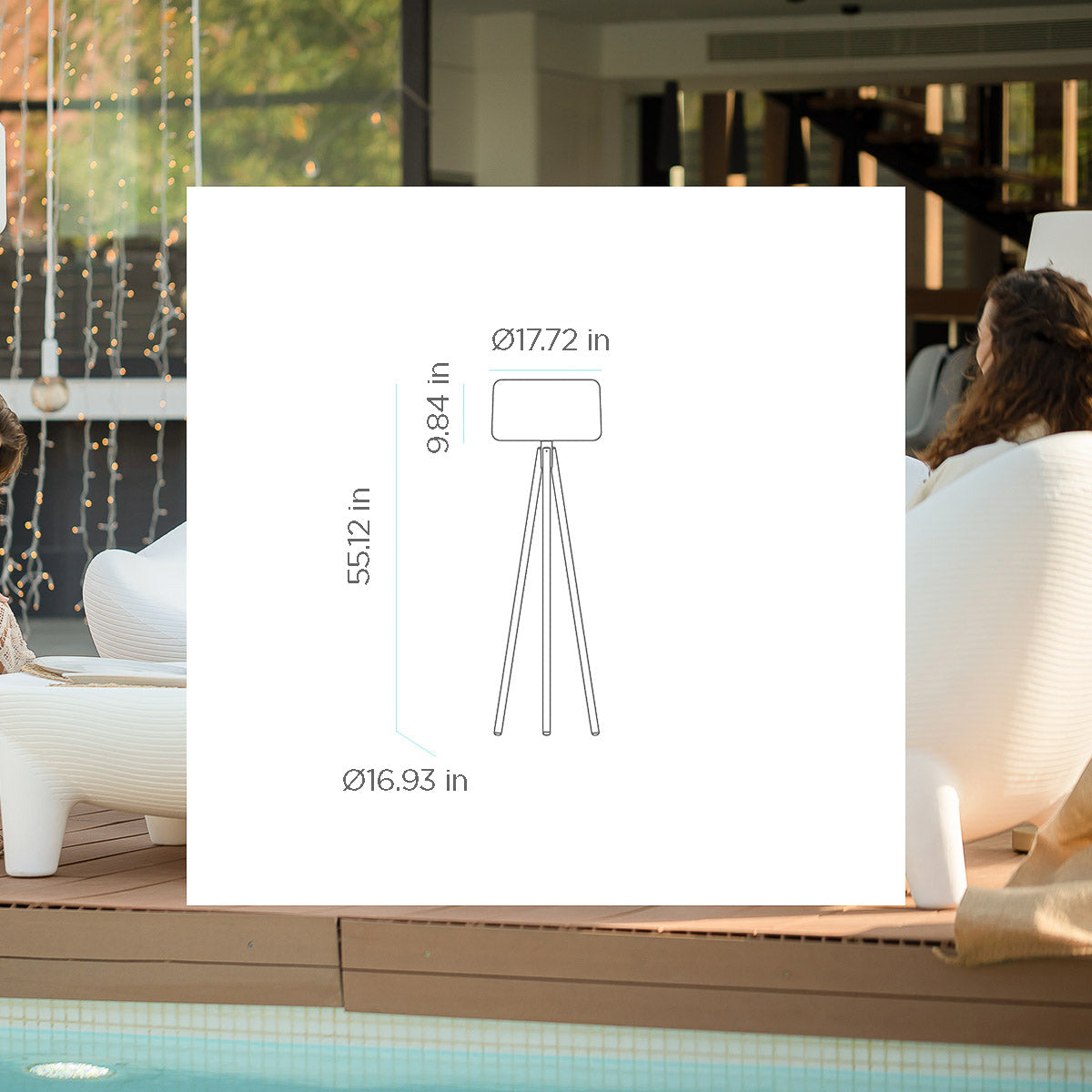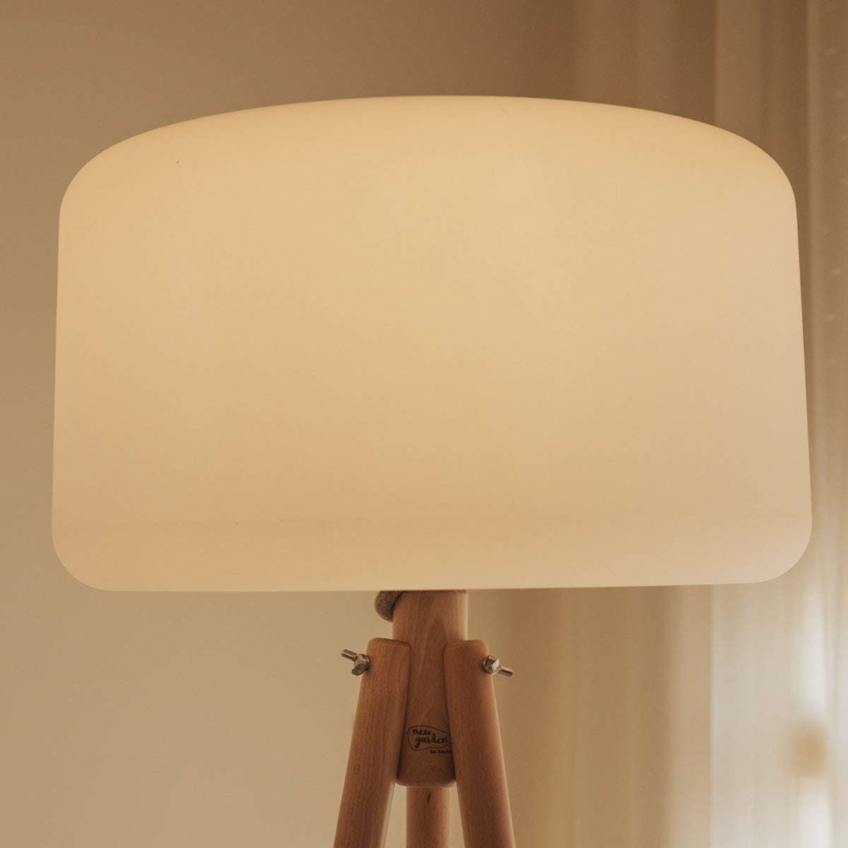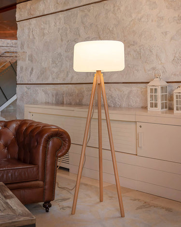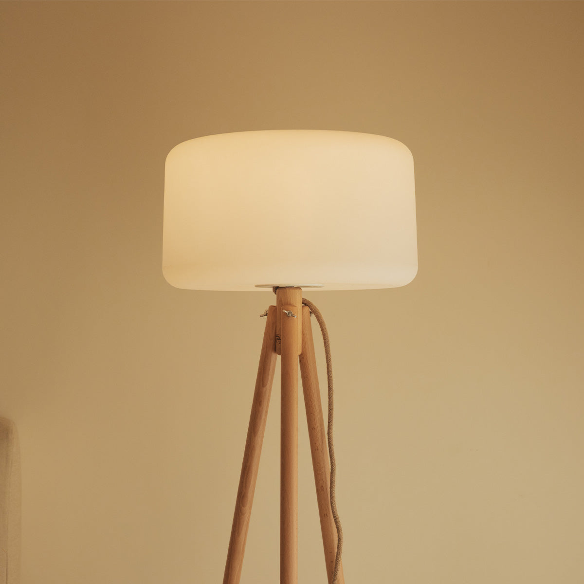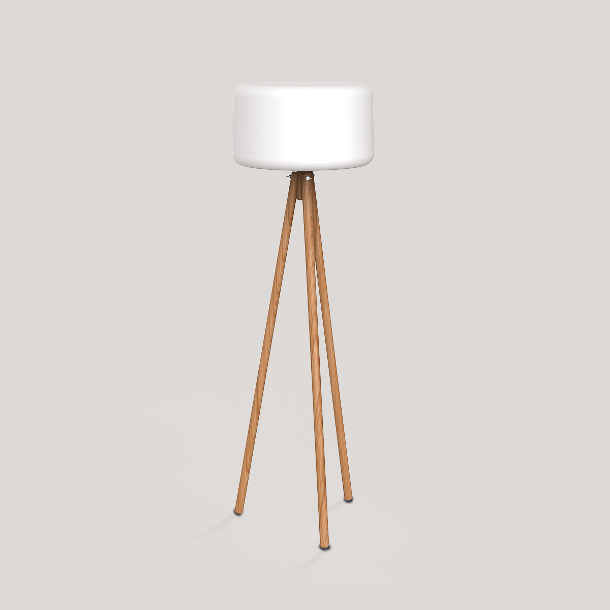 Chloe 140 is an original floor lamp with wooden legs ideal for decorating both the exterior and interior of your home. Its combination of wood and Polyethylene makes this product an essential in the home. Available in the In & Out, which includes remote control with dimmer, light color temperature change. BULB INCLUDED