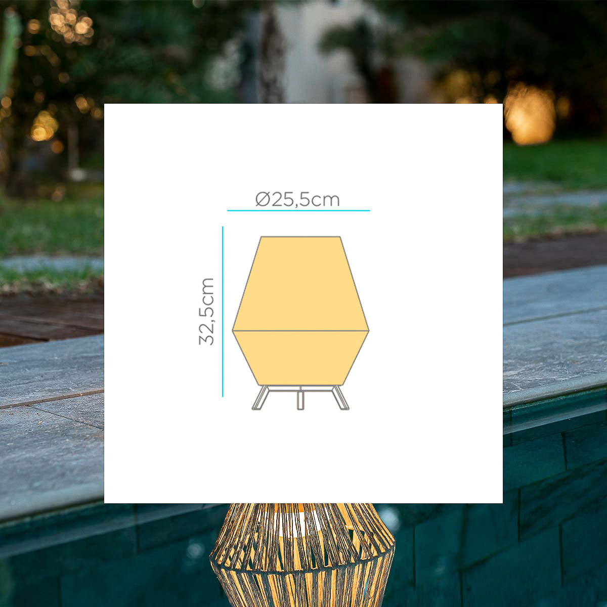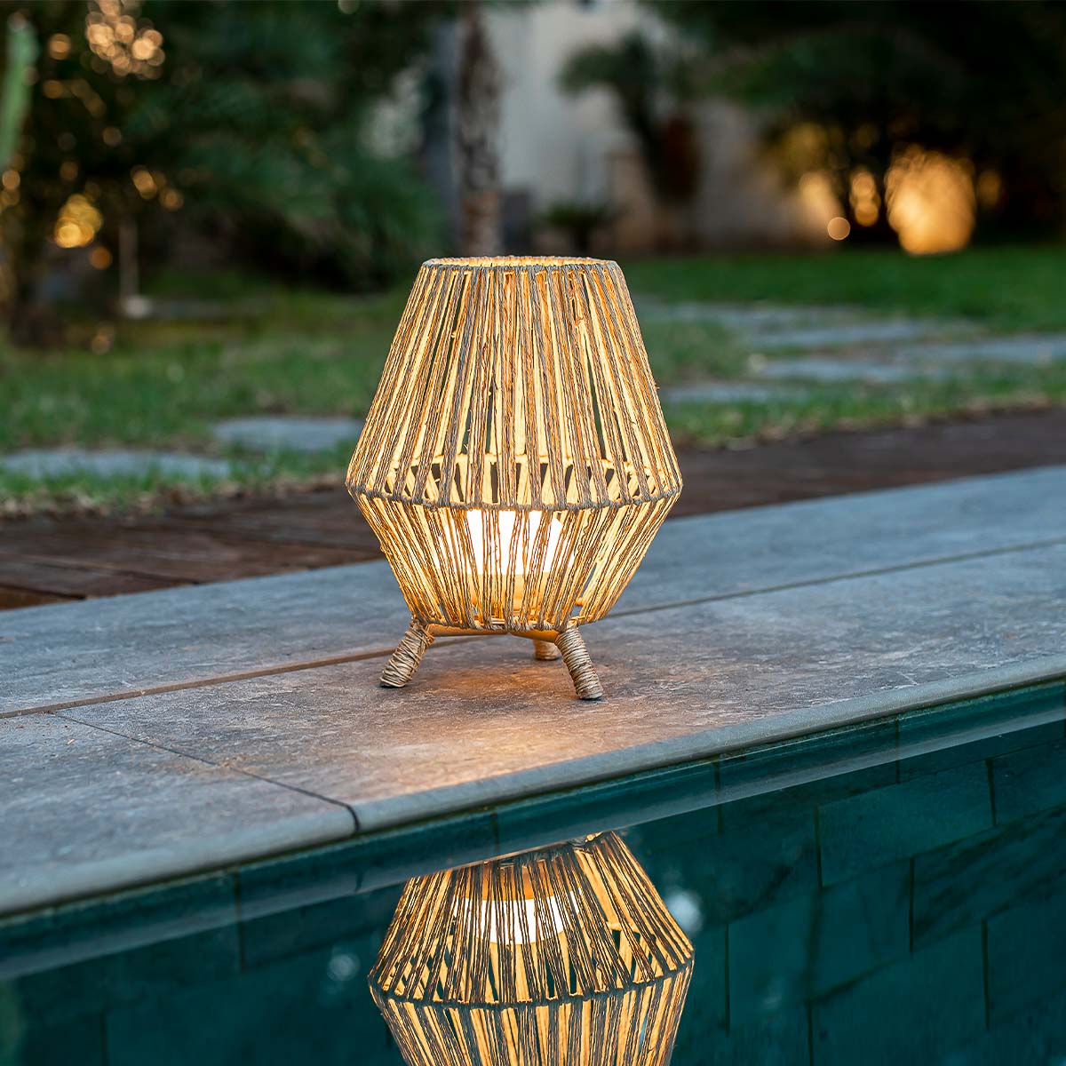 The Sisine 30 wireless decorative lamp is hand-woven with natural fibers. This lamp is the perfect complement to illuminate any space in your home or garden, giving it a natural touch.