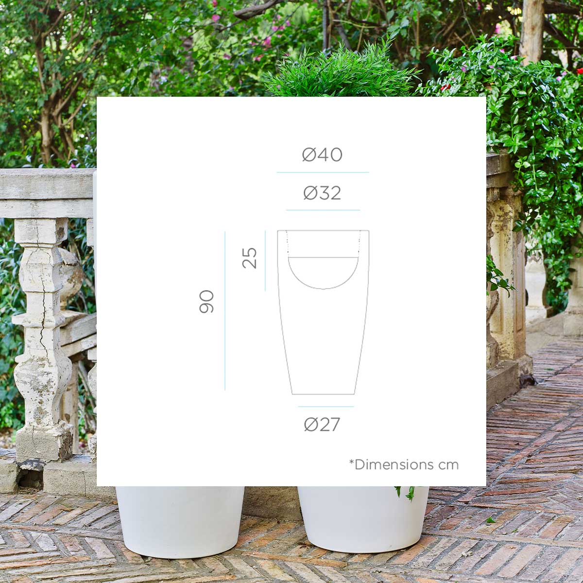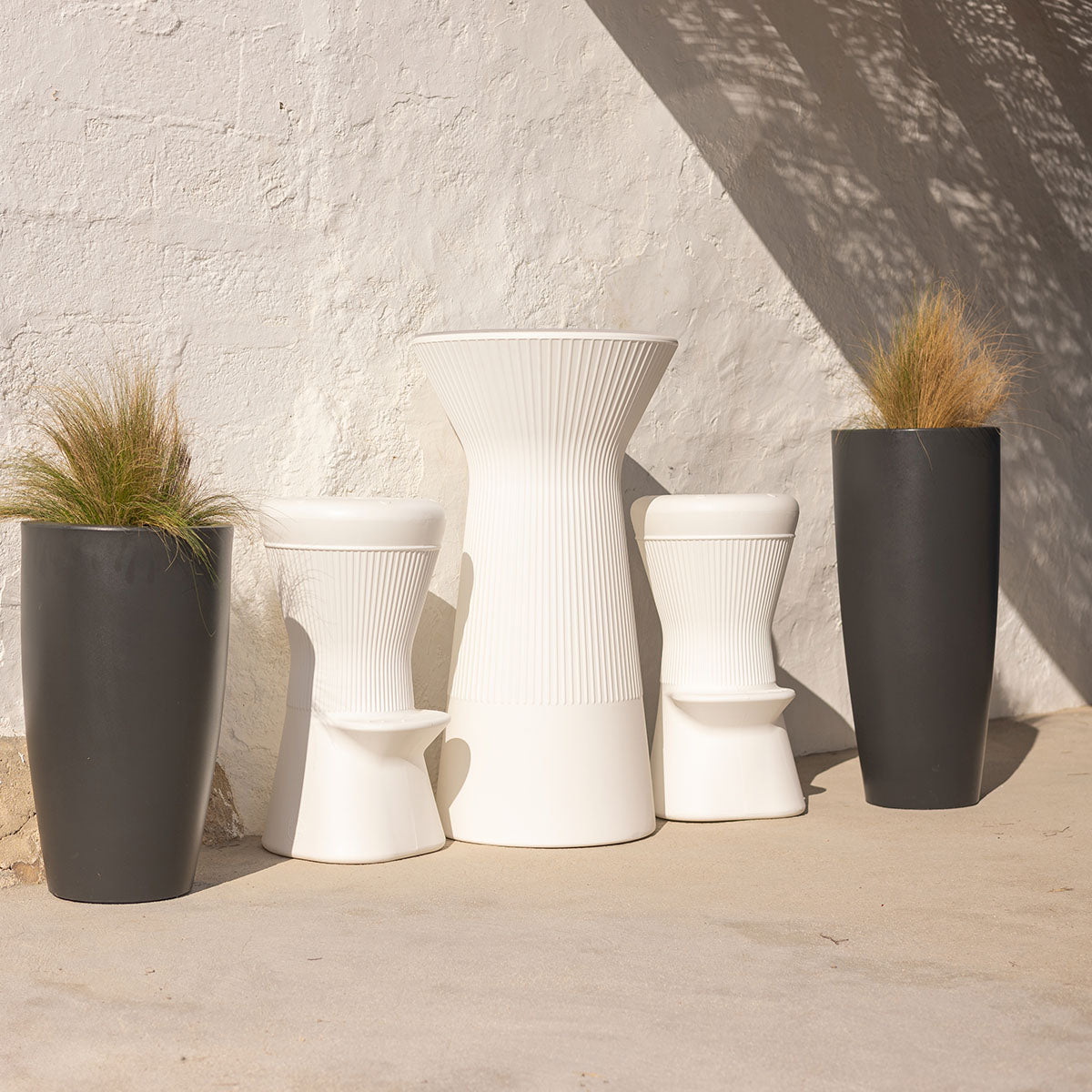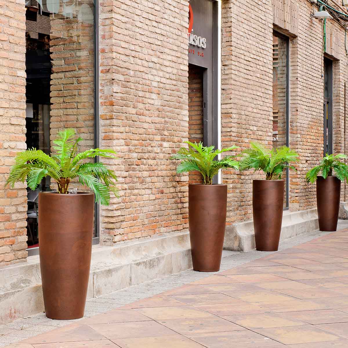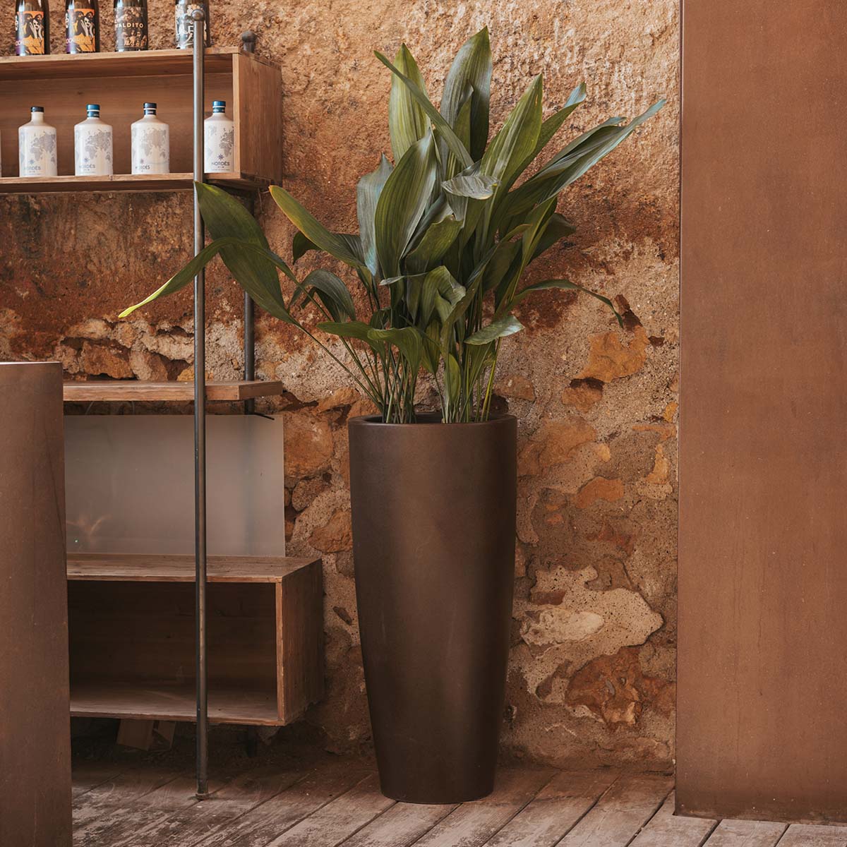 BAMBU: It is a cylindrical planter with a wide planting base. Its height and lightness allow you to have a large flower pot with unparalleled performance. Available in various sizes and finishes, both in color and light.