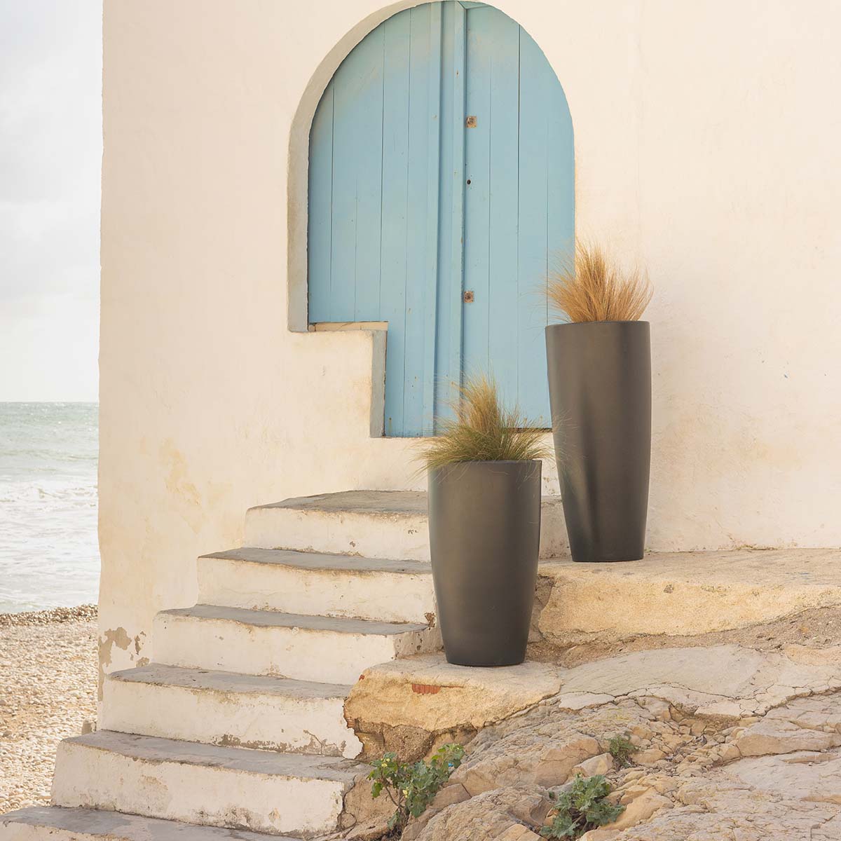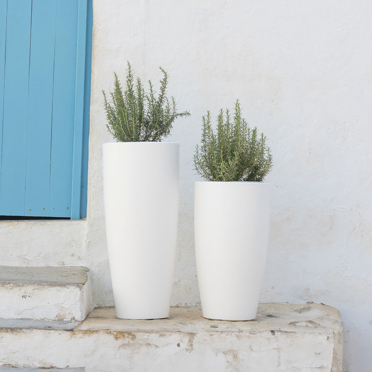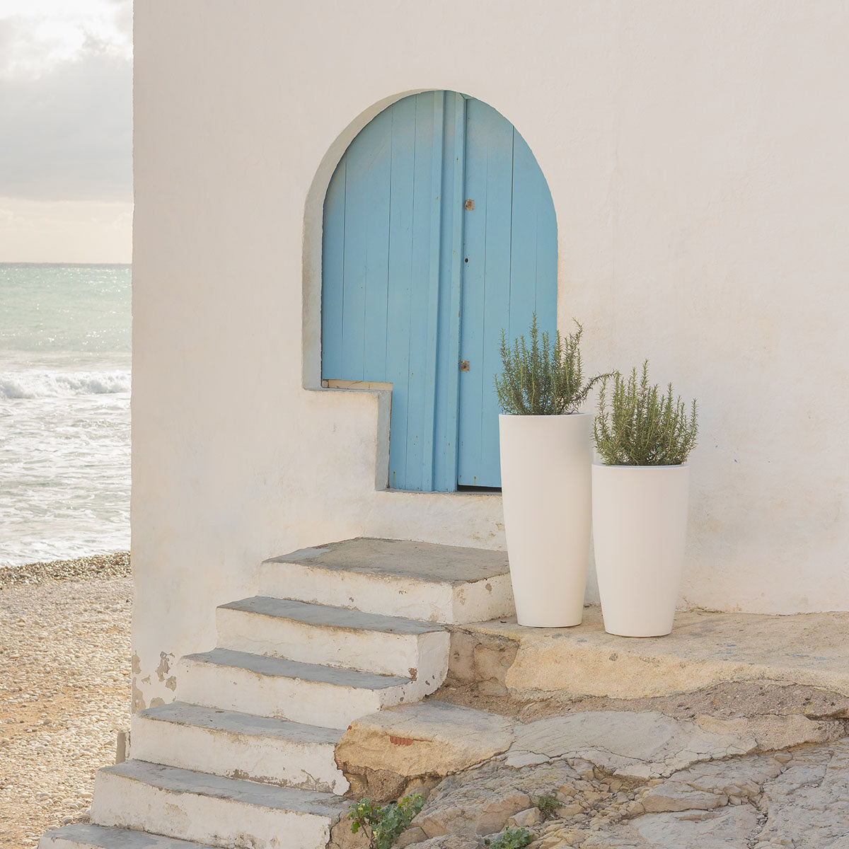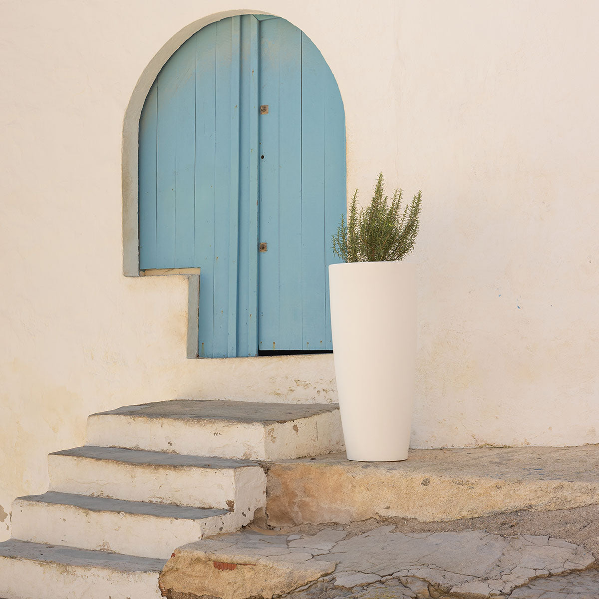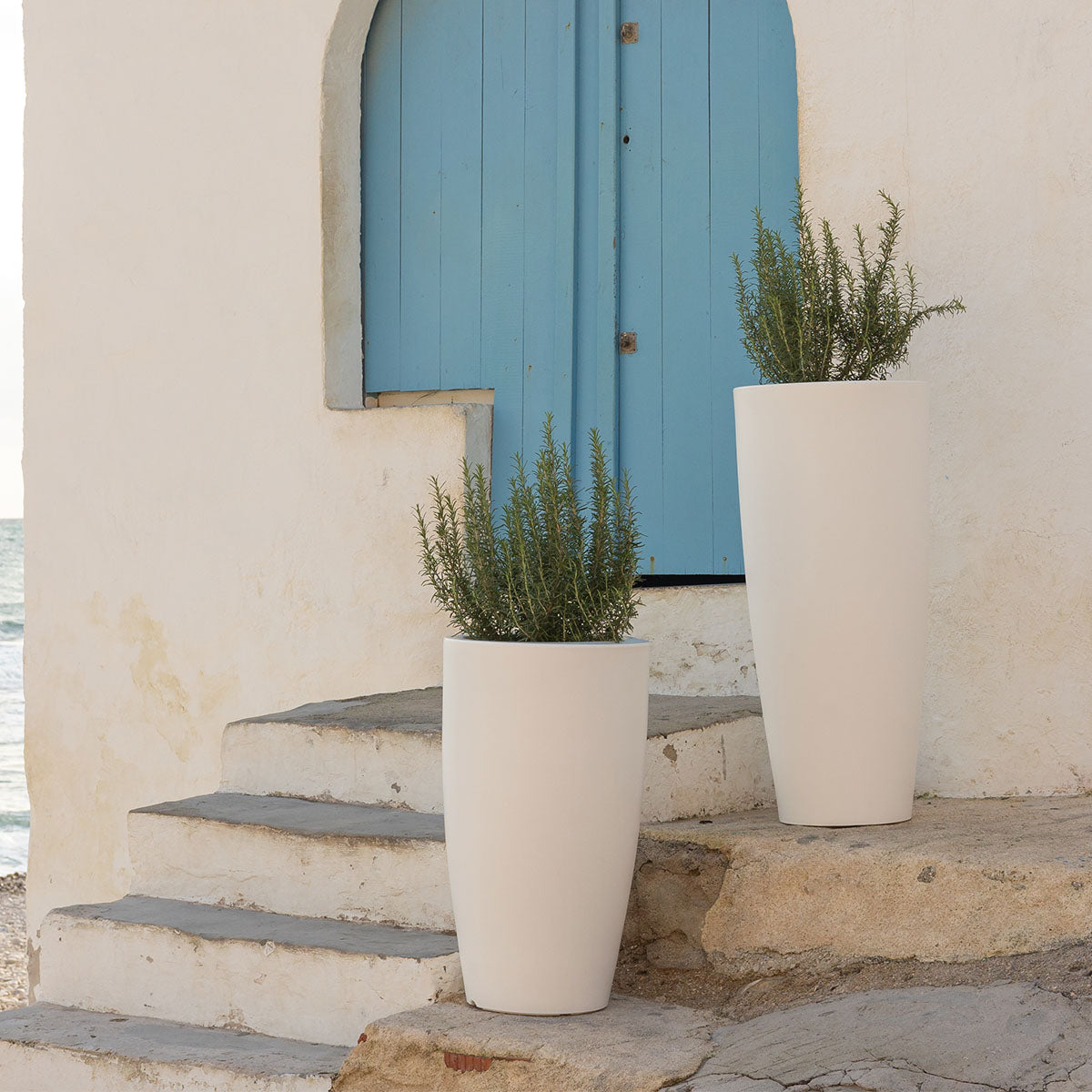 BAMBU: It is a cylindrical planter with a wide planting base. Its height and lightness allow you to have a large flower pot with unparalleled performance. Available in various sizes and finishes, both in color and light.