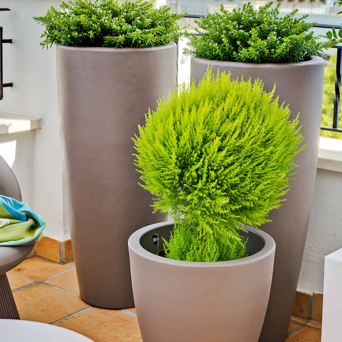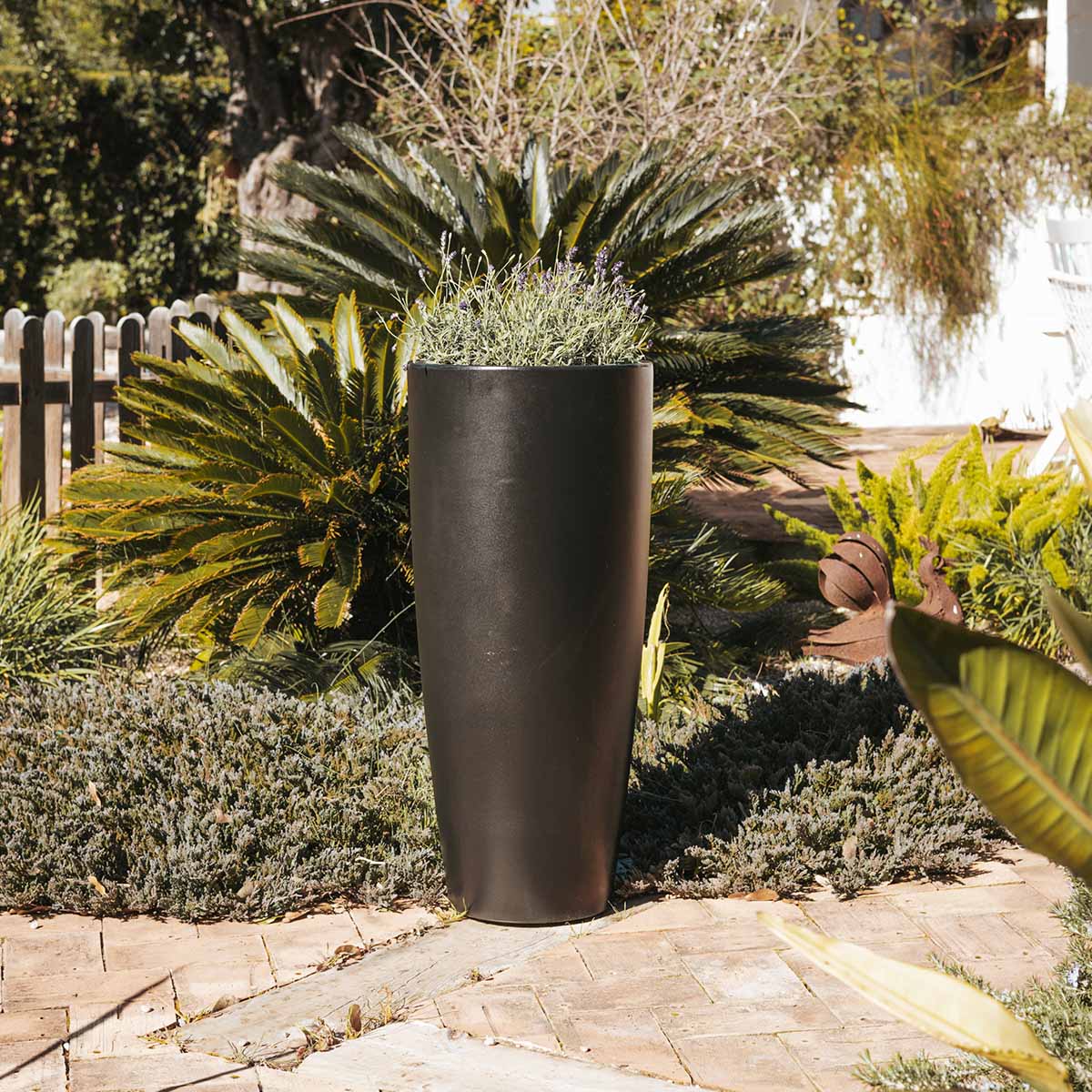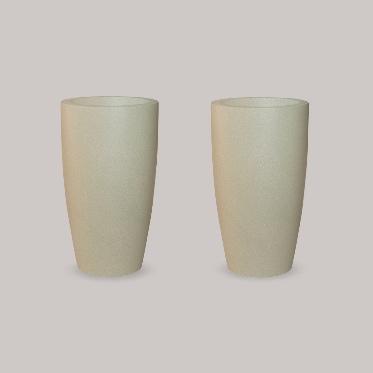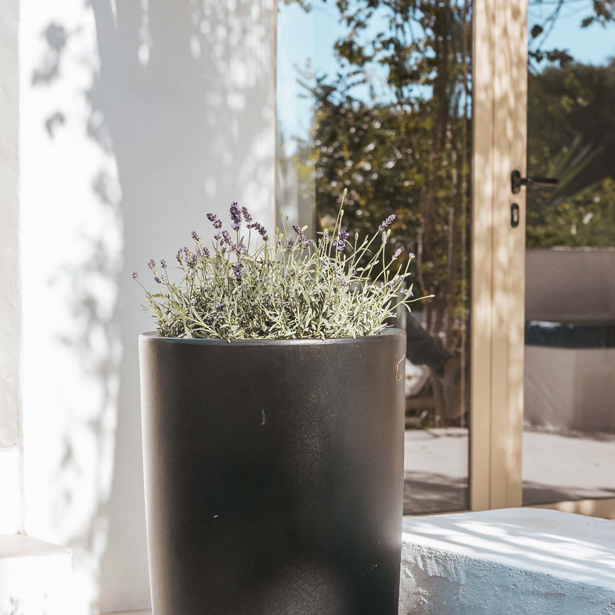BAMBU: It is a cylindrical planter with a wide planting base. Its height and lightness allow you to have a large flower pot with unparalleled performance. Available in various sizes and finishes, both in color and light.