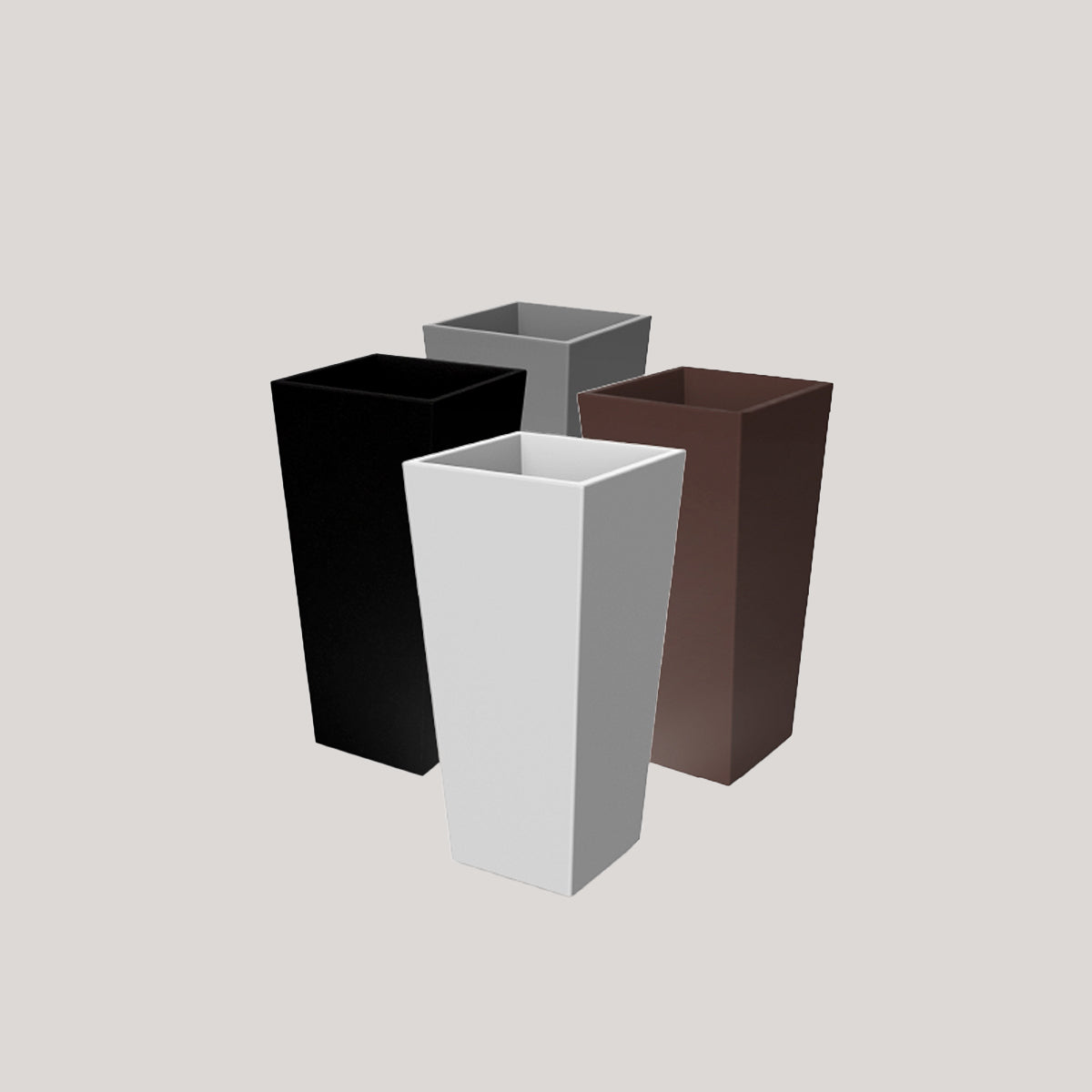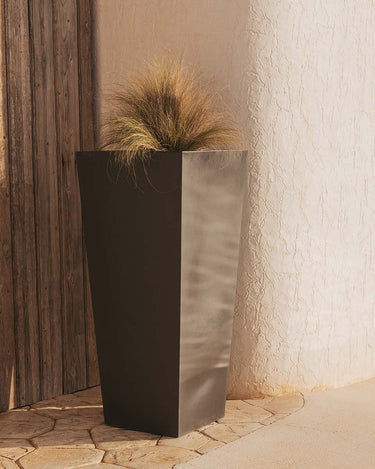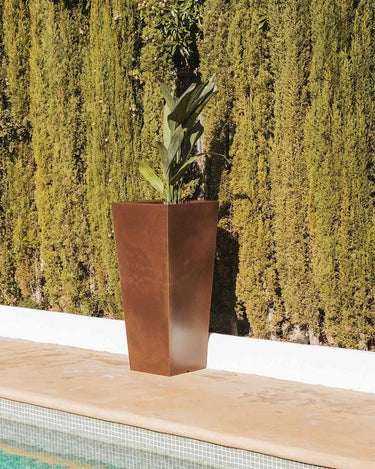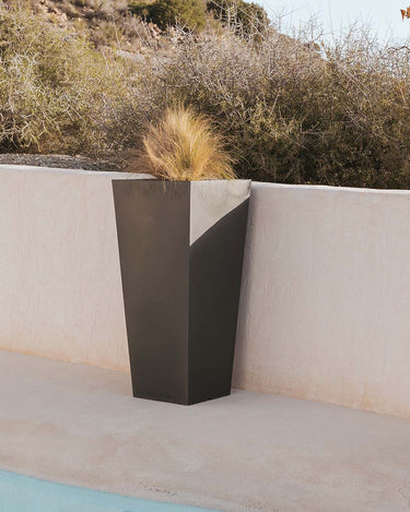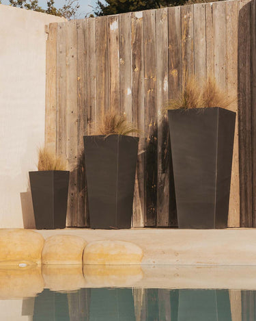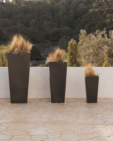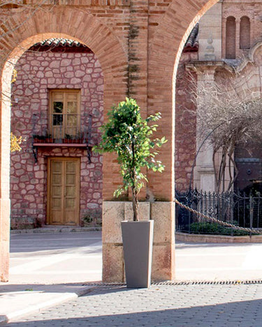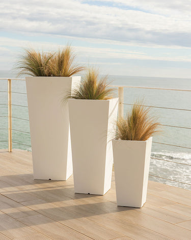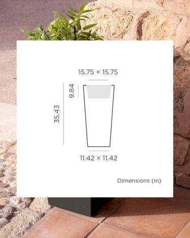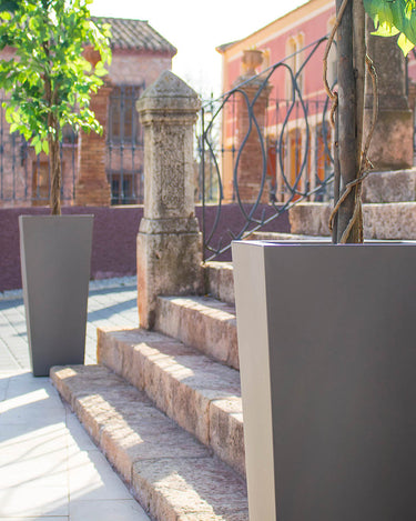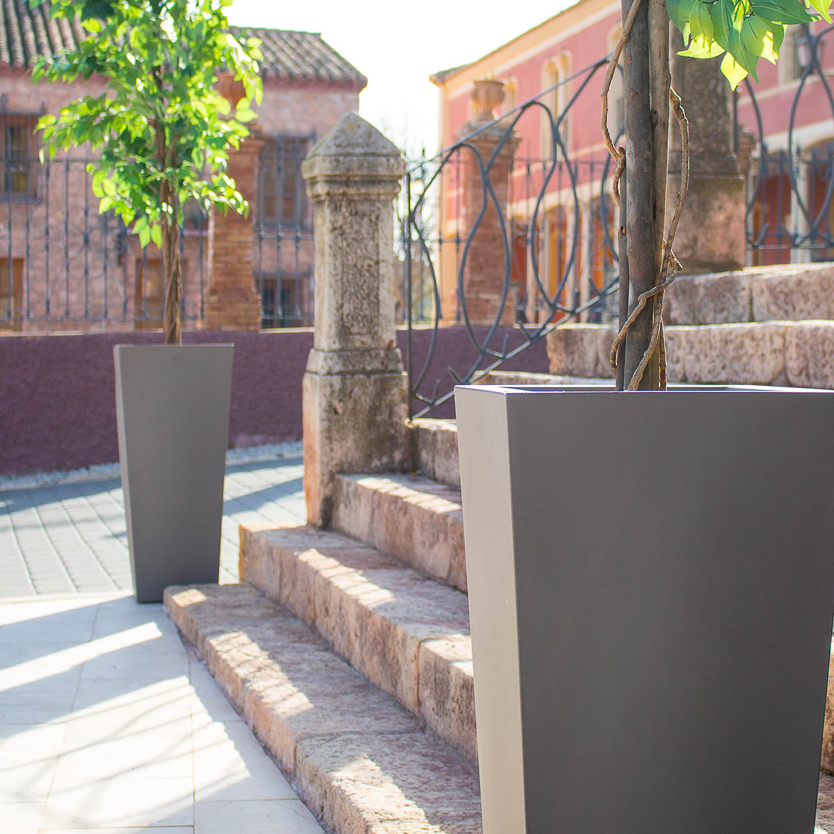 MELISA 40 (15.75 × 15.75 × 35.43 in): It is a trapezoidal planter manufactured in various sizes, finishes and colors. Basic lines and texture in a smooth finish.