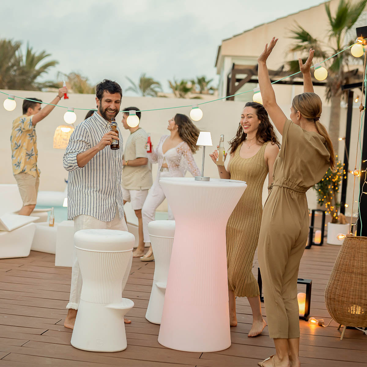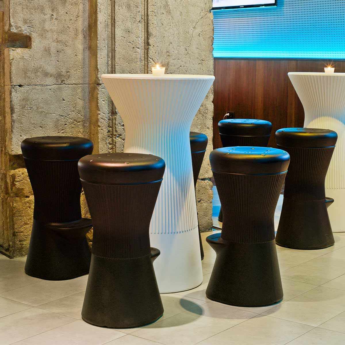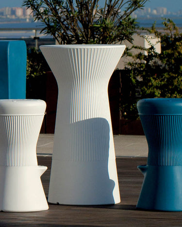 *CAPRI: Round table manufactured in different heights and finishes. Combine it with MALLORCA, MENORCA or CORFU to create chillout environments in your home or business.