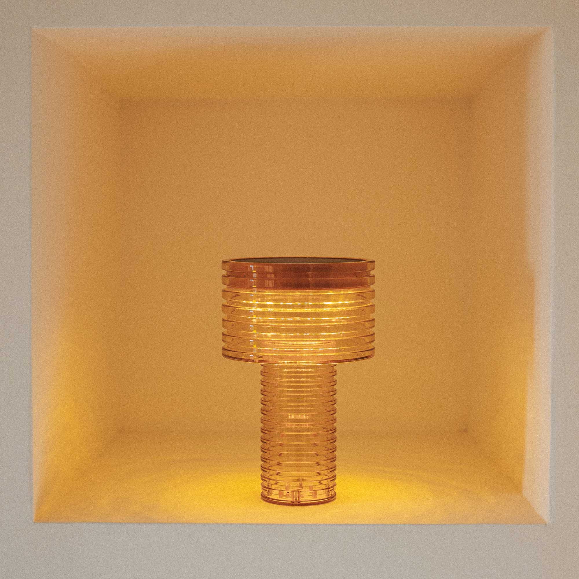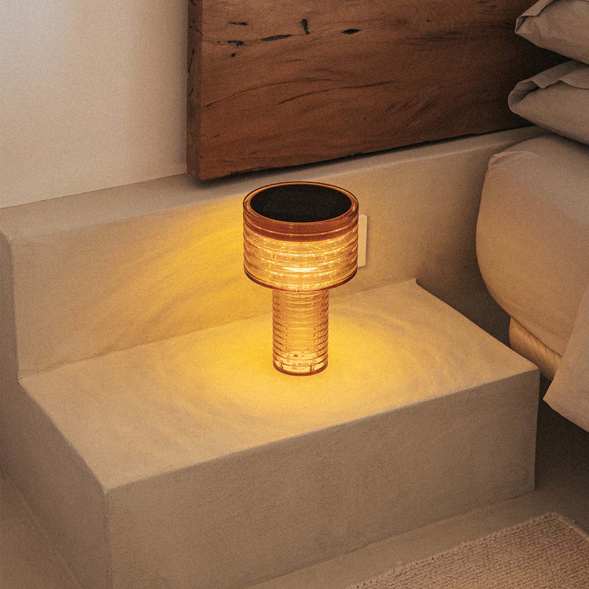 The Ambar Solar Outdoor Table Lamp is a cordless lighting solution designed for patios, terraces, balconies, and indoor spaces. It operates with a built-in rechargeable battery and integrated top solar panel.